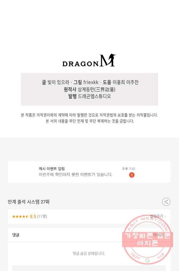 (27/181) 만계 출석 시스템 27화