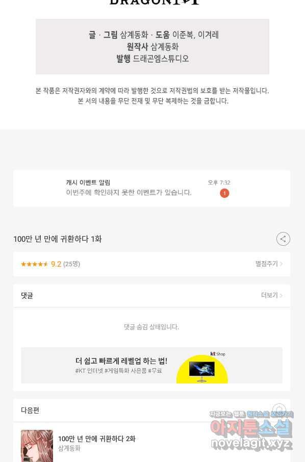 (1/290) 100만 년 만에 귀환하다 1화